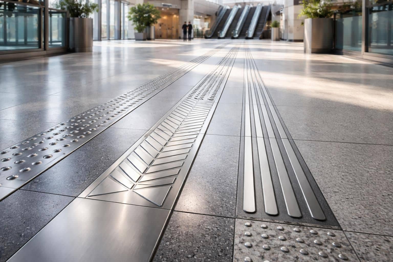 Le design des bandes de guidage doit répondre à des critères techniques rigoureux. Par exemple, elles doivent garantir un contraste de couleur d’au moins 70 % avec le sol. Ce type de conception assure une visibilité optimale, essentielle pour les personnes malvoyantes. La couleur vive de ces bandes attire également l’œil, facilitant l’orientation des usagers.